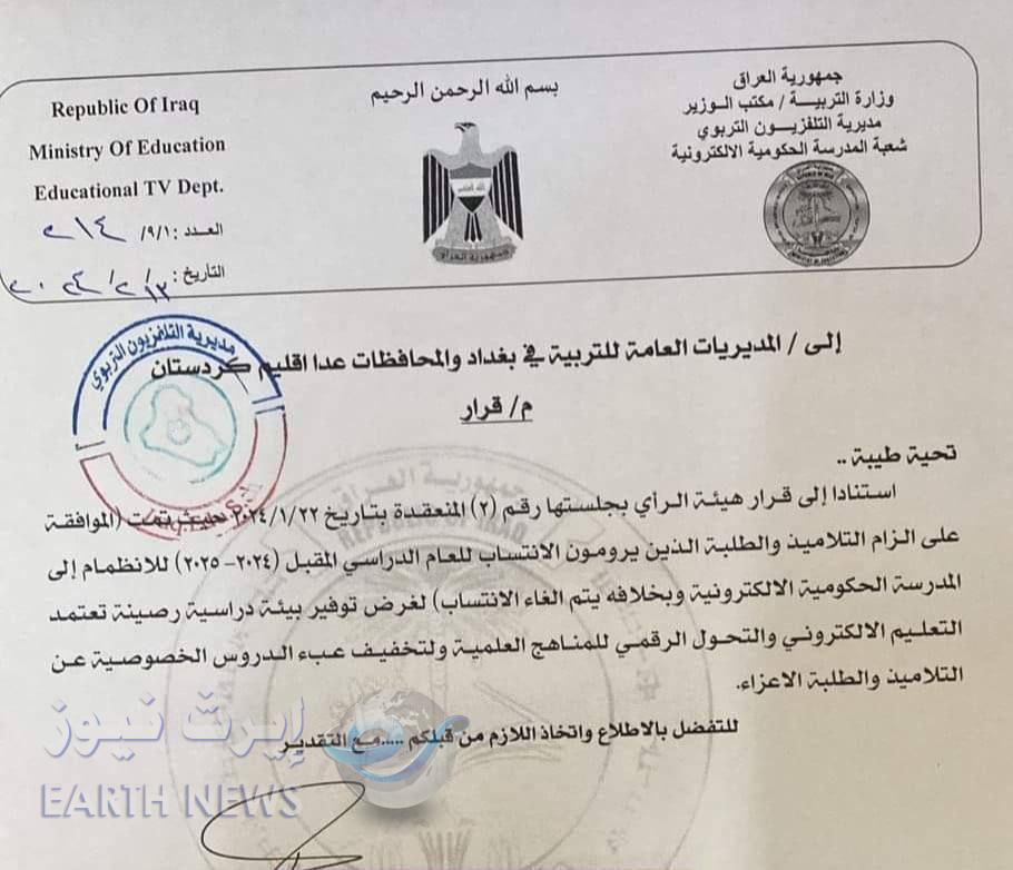 وجهت وزارة التربية اليوم الاربعاء، بالغاء الانتساب لطلاب المدارس للعام الدراسي المقبل.