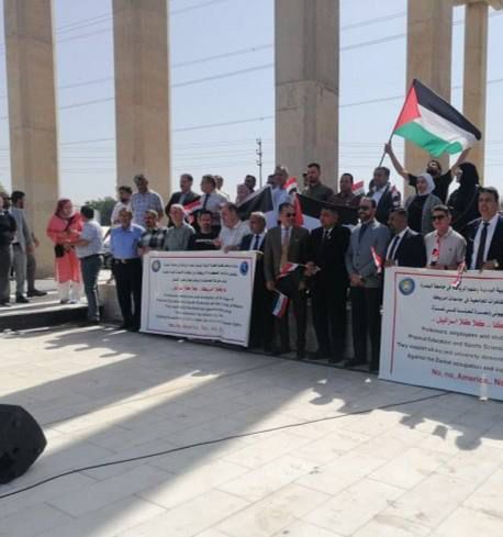 نظم اساتذة وطلبة الكليات في جامعة البصرة – موقع كرمة علي- وقفة تضامنية دعماً للاحتجاجات الطلابية في الجامعات الامريكية ضد ممارسات الكيان الصهيوني بحق ابناء الشعب الفلسطيني في غزة.