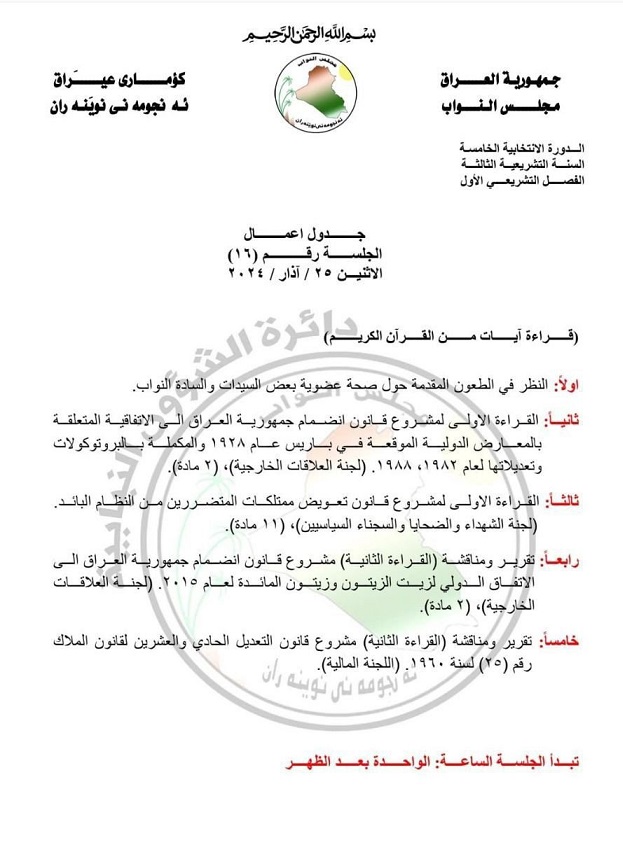 نشرت الدائرة الإعلامية لمجلس النواب جدول أعمال جلسة يوم الاثنين المقبل المتضمن 5 فقرات.